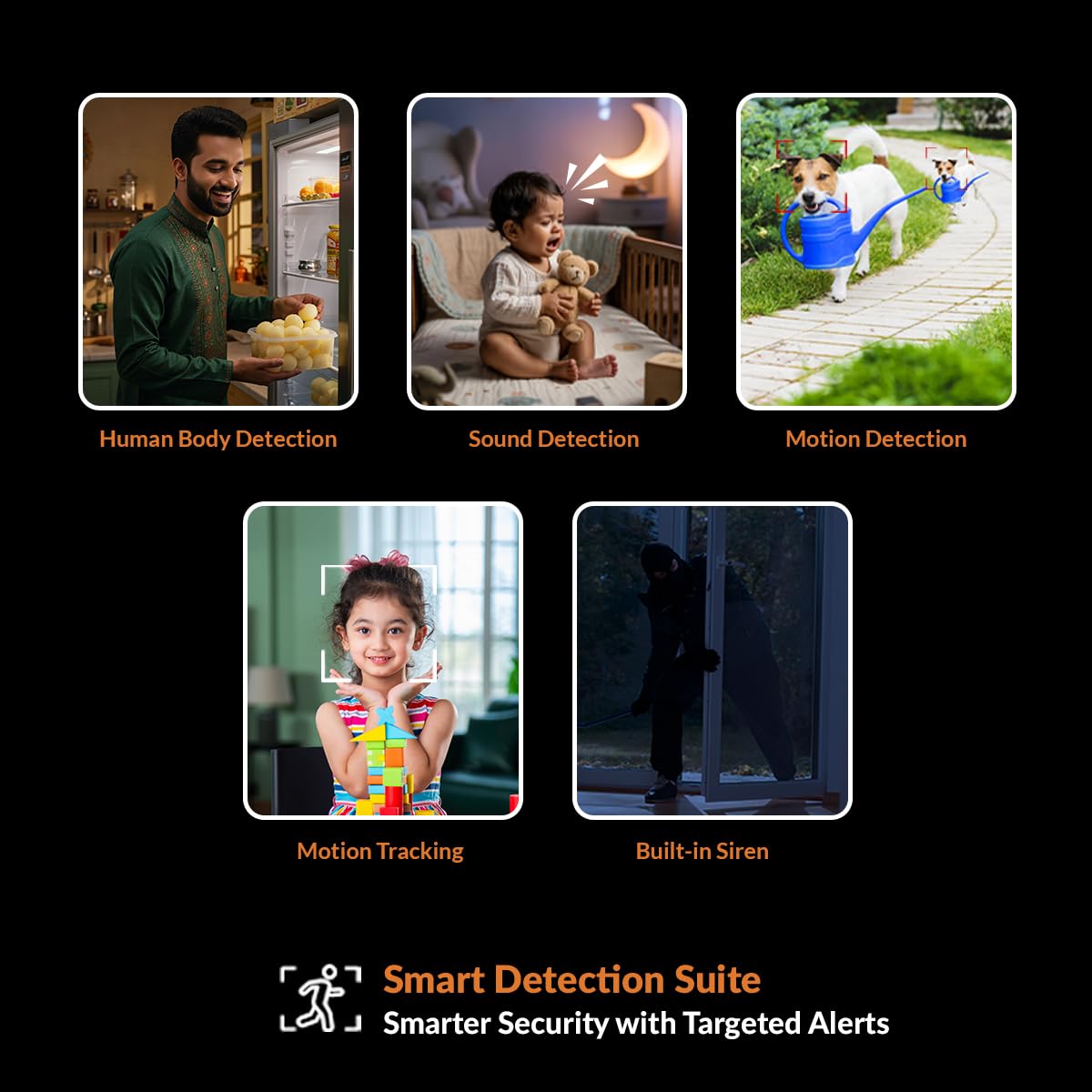• Human Body Detection Alerts – Reduces false alarms by detecting only people, not pets or passing vehicles. A must-have CCTV camera for home indoor and office monitoring.